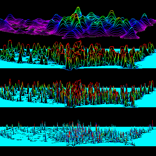 Perspective plot (from south) of wavelet transform of 1995 Debt Capacity Utilization Ratio. Data from USDA. Carried out in MR/1.